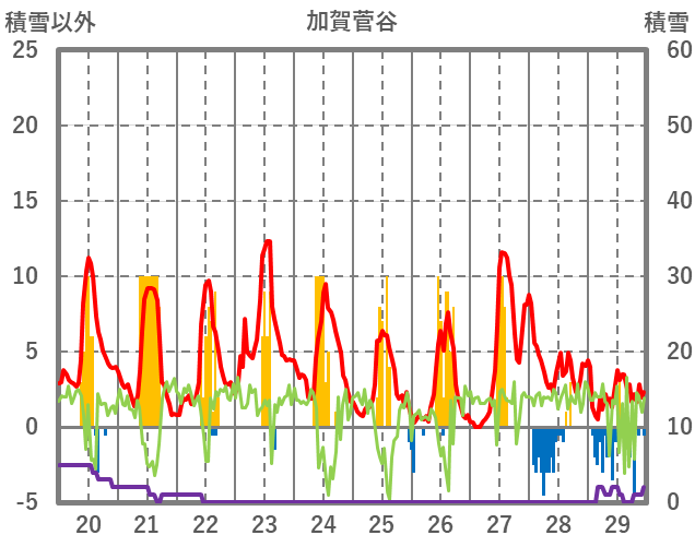 | 日 | 時 | 気温 | 降水 | 風向/風速 | 日照 | 積雪 | 降雪 |