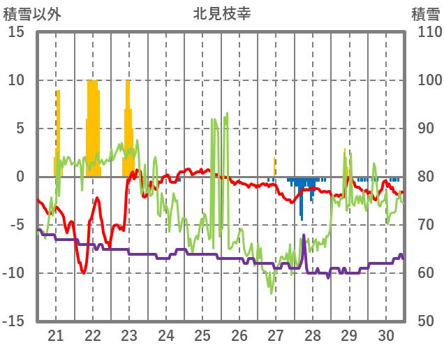 | 日 | 時 | 気温 | 降水 | 風向/風速 | 日照 | 積雪 | 降雪 |