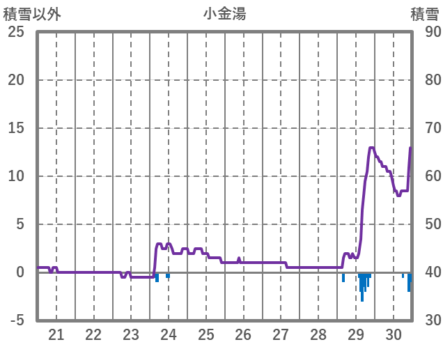 | 日 | 時 | 気温 | 降水 | 風向/風速 | 日照 | 積雪 | 降雪 |
