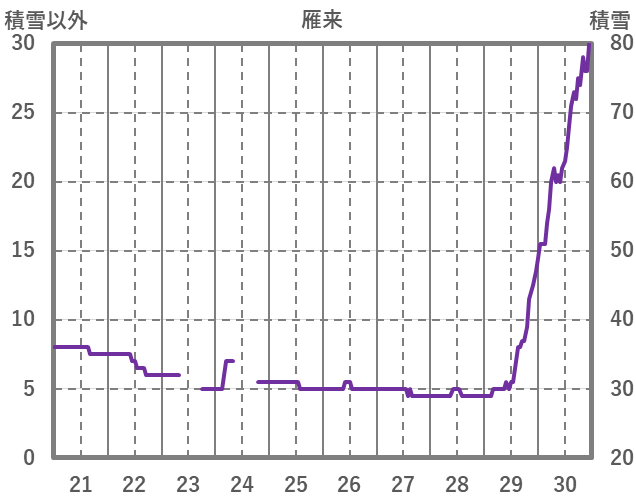 | 日 | 時 | 気温 | 降水 | 風向/風速 | 日照 | 積雪 | 降雪 |