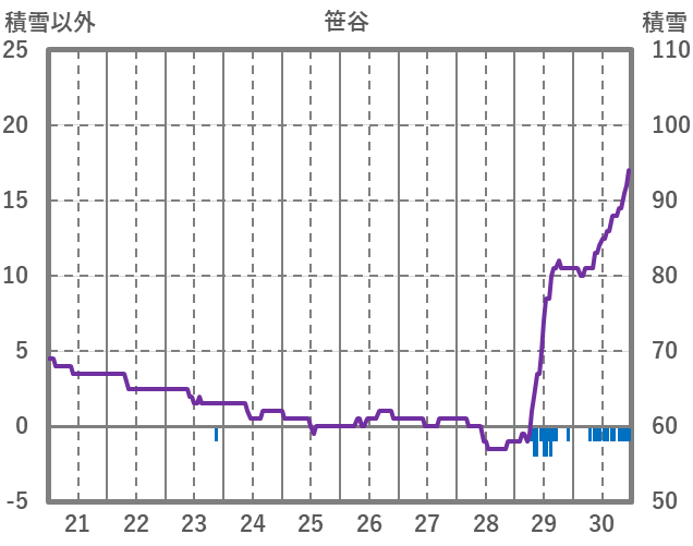 | 日 | 時 | 気温 | 降水 | 風向/風速 | 日照 | 積雪 | 降雪 |