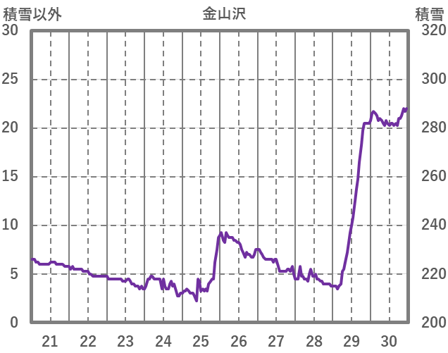| 日 | 時 | 気温 | 降水 | 風向/風速 | 日照 | 積雪 | 降雪 |
