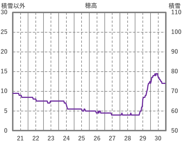 | 日 | 時 | 気温 | 降水 | 風向/風速 | 日照 | 積雪 | 降雪 |