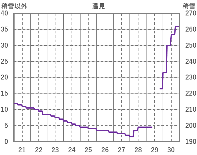 | 日 | 時 | 気温 | 降水 | 風向/風速 | 日照 | 積雪 | 降雪 |