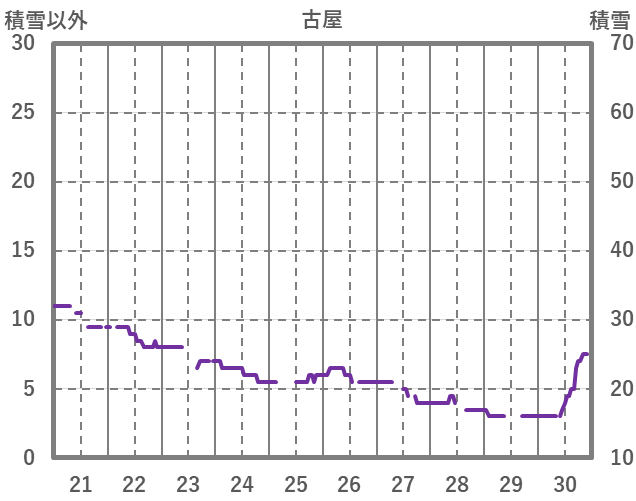 | 日 | 時 | 気温 | 降水 | 風向/風速 | 日照 | 積雪 | 降雪 |