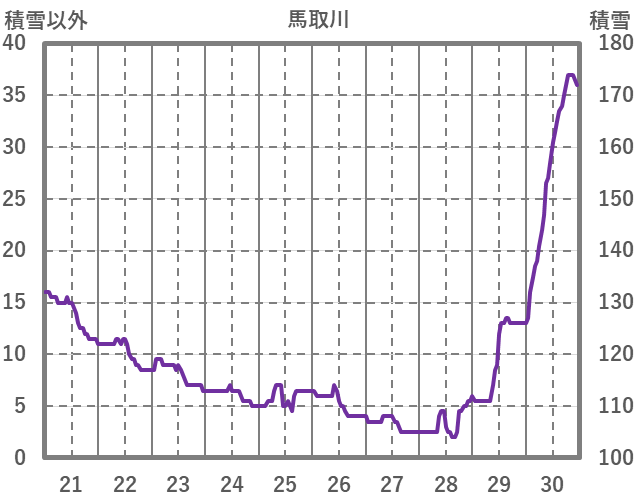 | 日 | 時 | 気温 | 降水 | 風向/風速 | 日照 | 積雪 | 降雪 |