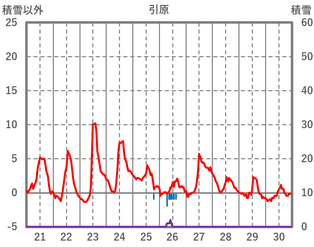 | 日 | 時 | 気温 | 降水 | 風向/風速 | 日照 | 積雪 | 降雪 |