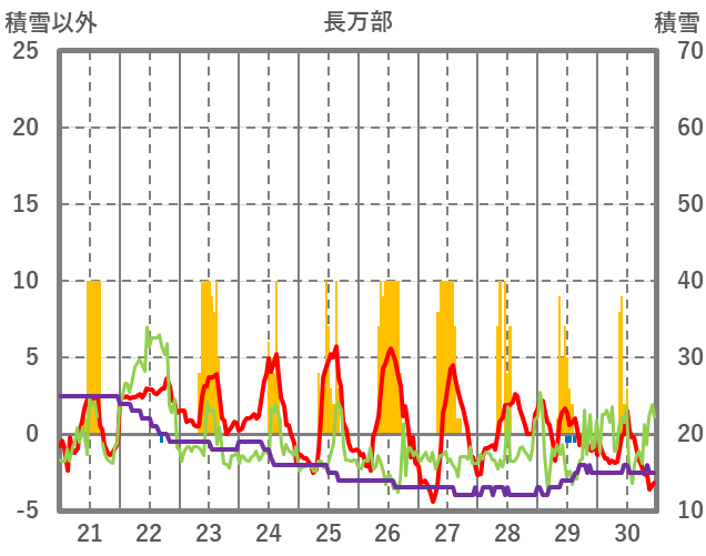 | 日 | 時 | 気温 | 降水 | 風向/風速 | 日照 | 積雪 | 降雪 |