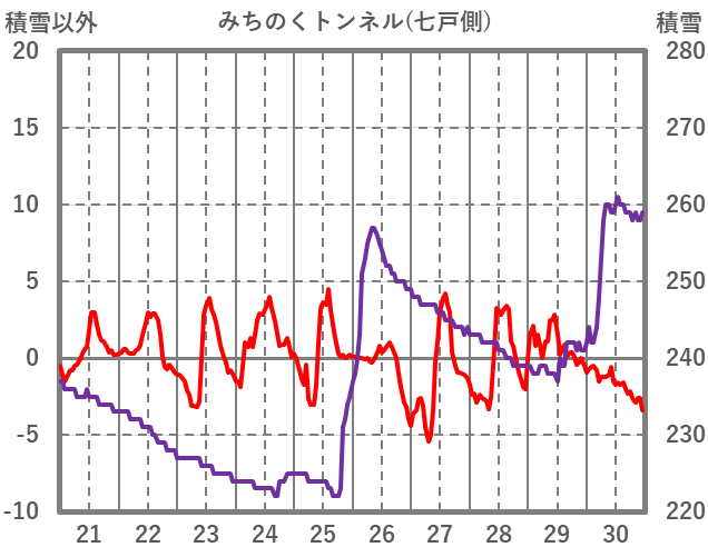 | 日 | 時 | 気温 | 降水 | 風向/風速 | 日照 | 積雪 | 降雪 |