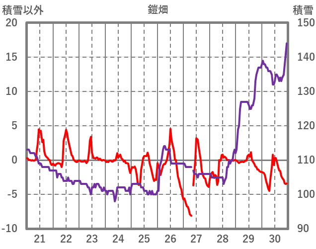 | 日 | 時 | 気温 | 降水 | 風向/風速 | 日照 | 積雪 | 降雪 |