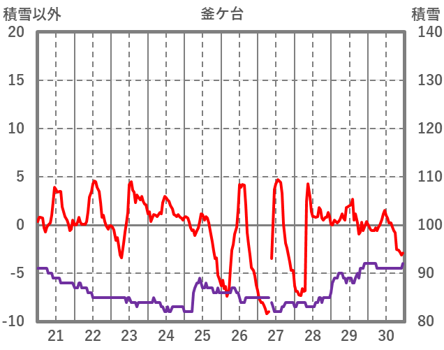 | 日 | 時 | 気温 | 降水 | 風向/風速 | 日照 | 積雪 | 降雪 |