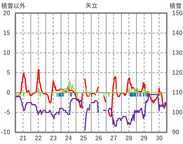 | 日 | 時 | 気温 | 降水 | 風向/風速 | 日照 | 積雪 | 降雪 |