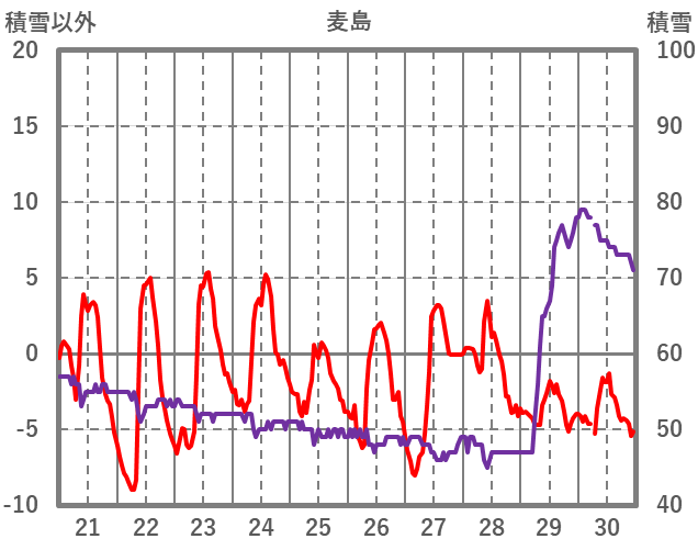 | 日 | 時 | 気温 | 降水 | 風向/風速 | 日照 | 積雪 | 降雪 |
