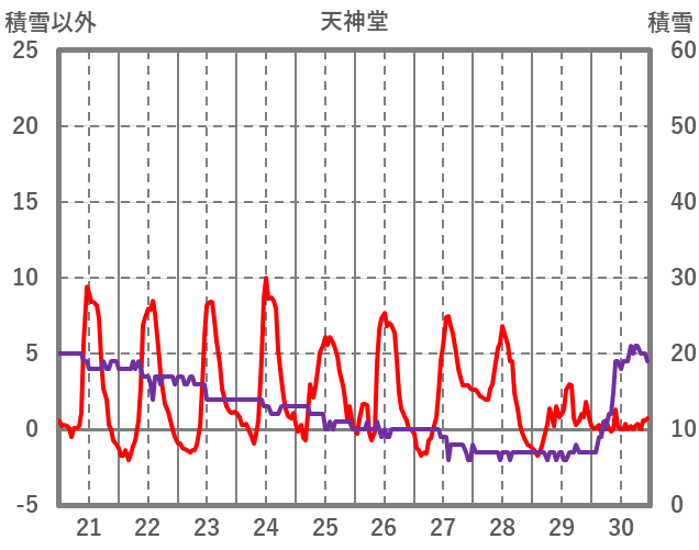 | 日 | 時 | 気温 | 降水 | 風向/風速 | 日照 | 積雪 | 降雪 |