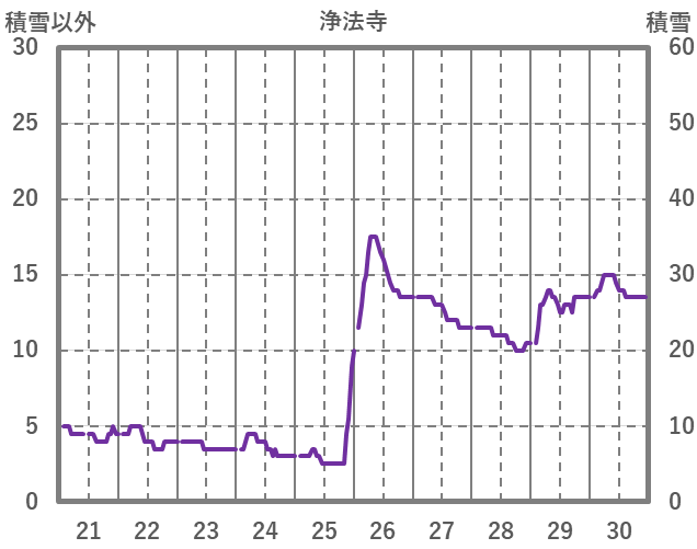 | 日 | 時 | 気温 | 降水 | 風向/風速 | 日照 | 積雪 | 降雪 |