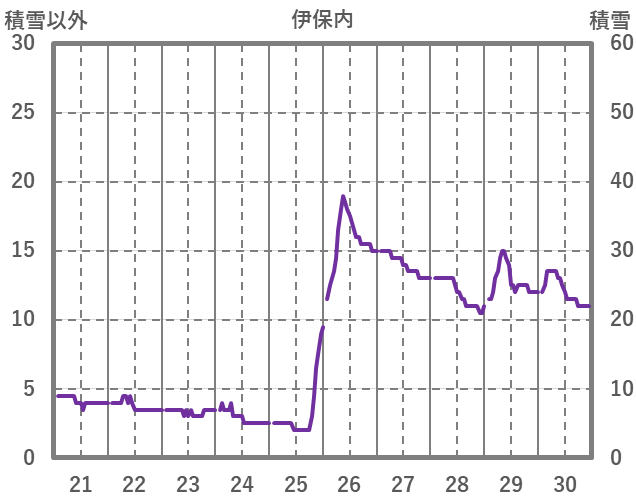 | 日 | 時 | 気温 | 降水 | 風向/風速 | 日照 | 積雪 | 降雪 |