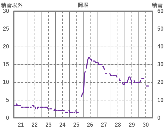 | 日 | 時 | 気温 | 降水 | 風向/風速 | 日照 | 積雪 | 降雪 |