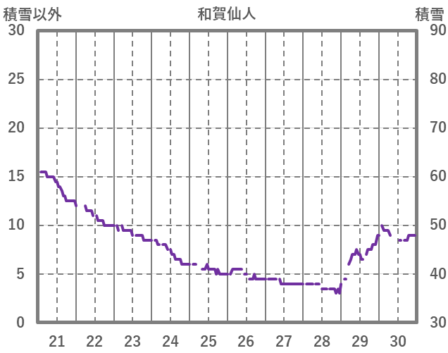 | 日 | 時 | 気温 | 降水 | 風向/風速 | 日照 | 積雪 | 降雪 |