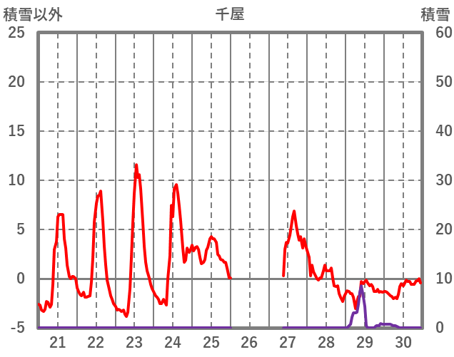 | 日 | 時 | 気温 | 降水 | 風向/風速 | 日照 | 積雪 | 降雪 |