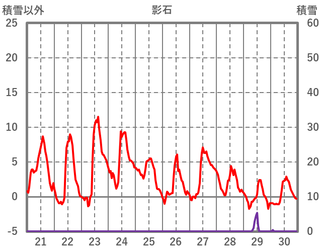 | 日 | 時 | 気温 | 降水 | 風向/風速 | 日照 | 積雪 | 降雪 |