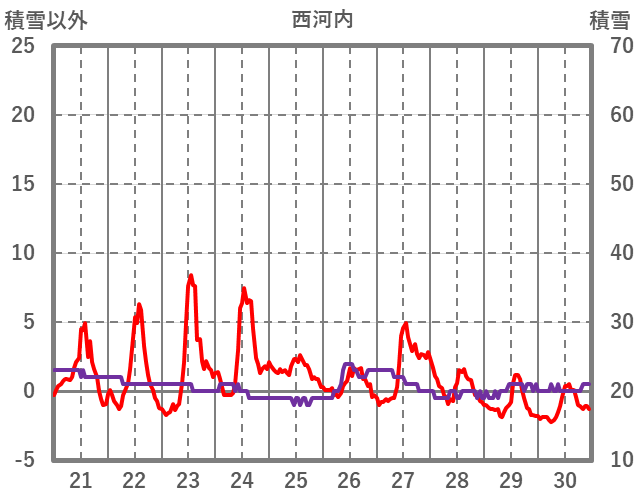 | 日 | 時 | 気温 | 降水 | 風向/風速 | 日照 | 積雪 | 降雪 |