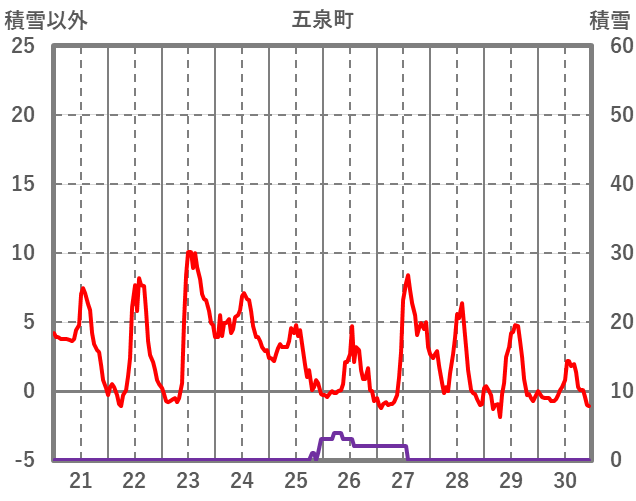 | 日 | 時 | 気温 | 降水 | 風向/風速 | 日照 | 積雪 | 降雪 |