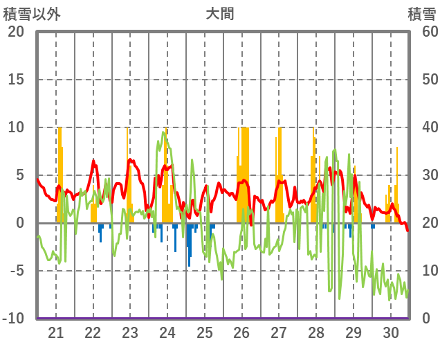 | 日 | 時 | 気温 | 降水 | 風向/風速 | 日照 | 積雪 | 降雪 |