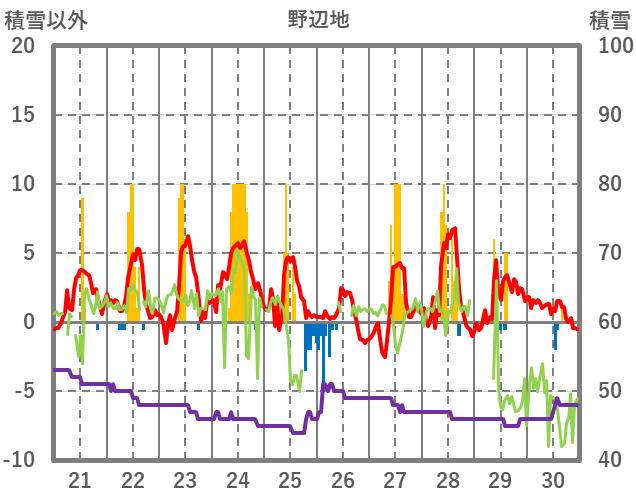 | 日 | 時 | 気温 | 降水 | 風向/風速 | 日照 | 積雪 | 降雪 |