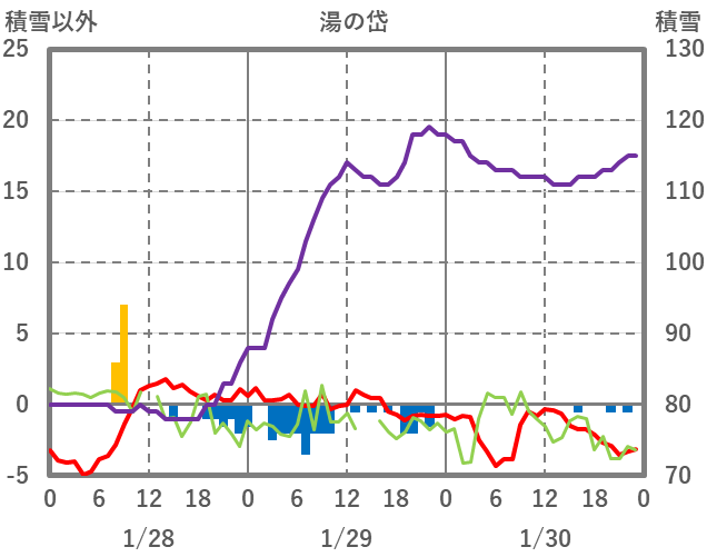 | 日 | 時 | 気温 | 降水 | 風向/風速 | 日照 | 積雪 | 降雪 |