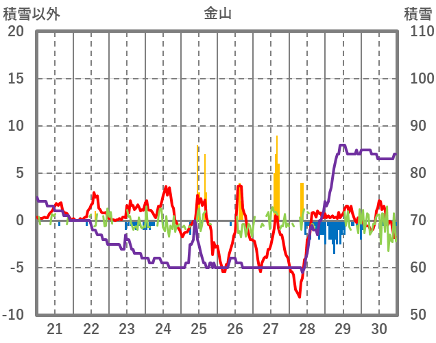 | 日 | 時 | 気温 | 降水 | 風向/風速 | 日照 | 積雪 | 降雪 |