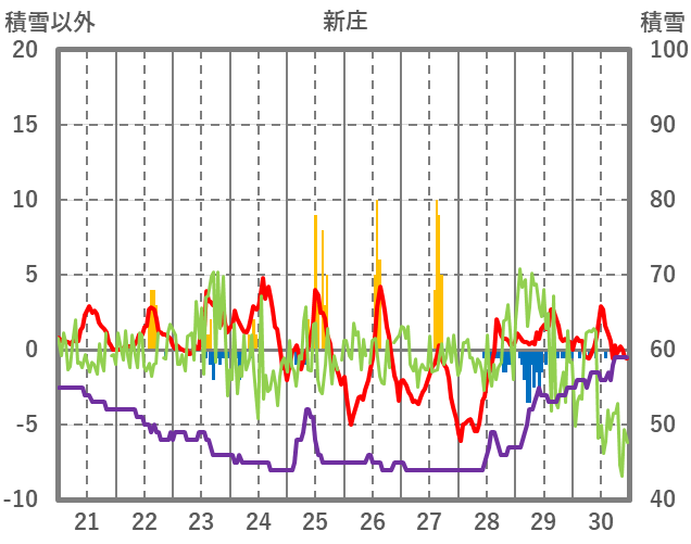 | 日 | 時 | 気温 | 降水 | 風向/風速 | 日照 | 積雪 | 降雪 |