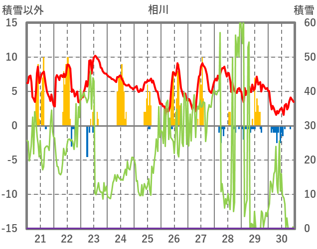 | 日 | 時 | 気温 | 降水 | 風向/風速 | 日照 | 積雪 | 降雪 |