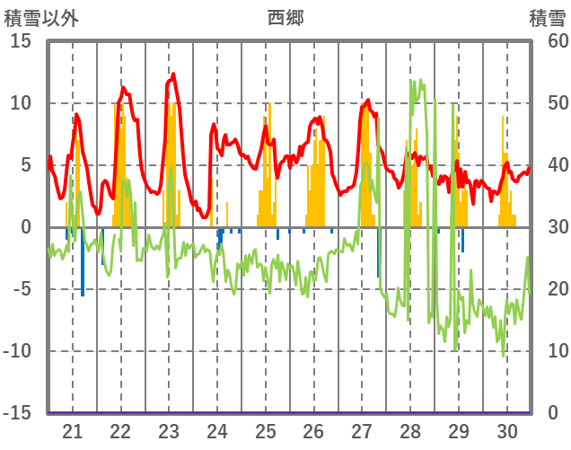 | 日 | 時 | 気温 | 降水 | 風向/風速 | 日照 | 積雪 | 降雪 |