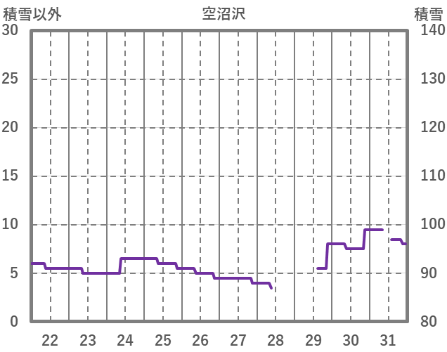 | 日 | 時 | 気温 | 降水 | 風向/風速 | 日照 | 積雪 | 降雪 |