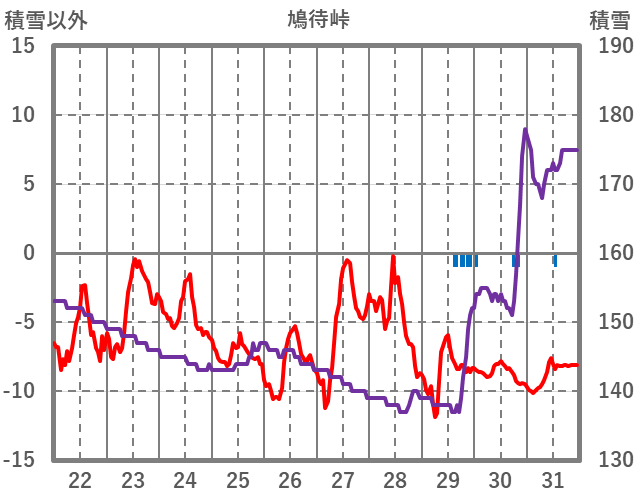 | 日 | 時 | 気温 | 降水 | 風向/風速 | 日照 | 積雪 | 降雪 |
