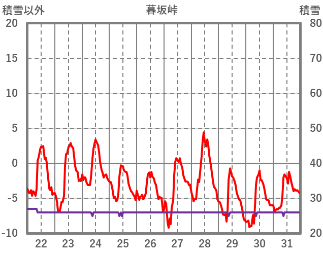 | 日 | 時 | 気温 | 降水 | 風向/風速 | 日照 | 積雪 | 降雪 |