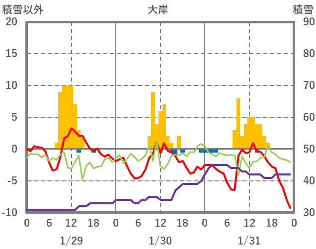 | 日 | 時 | 気温 | 降水 | 風向/風速 | 日照 | 積雪 | 降雪 |