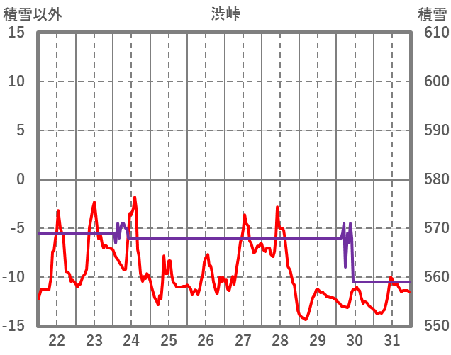 | 日 | 時 | 気温 | 降水 | 風向/風速 | 日照 | 積雪 | 降雪 |