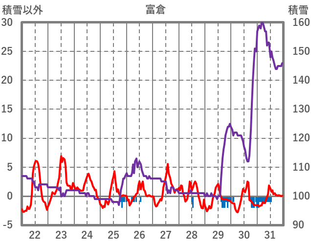 | 日 | 時 | 気温 | 降水 | 風向/風速 | 日照 | 積雪 | 降雪 |