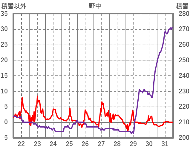 | 日 | 時 | 気温 | 降水 | 風向/風速 | 日照 | 積雪 | 降雪 |