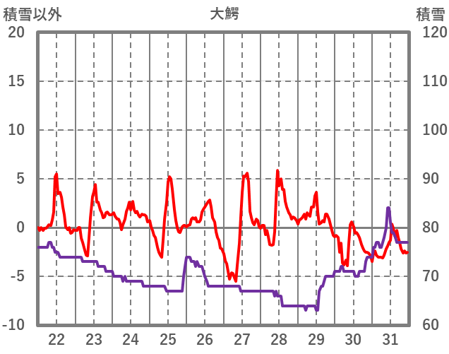 | 日 | 時 | 気温 | 降水 | 風向/風速 | 日照 | 積雪 | 降雪 |