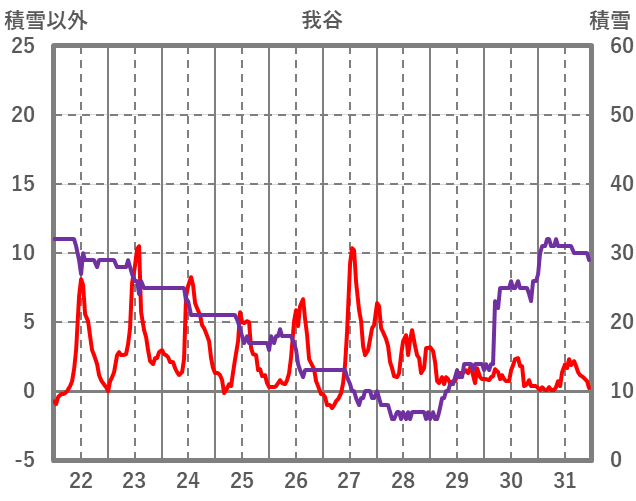 | 日 | 時 | 気温 | 降水 | 風向/風速 | 日照 | 積雪 | 降雪 |