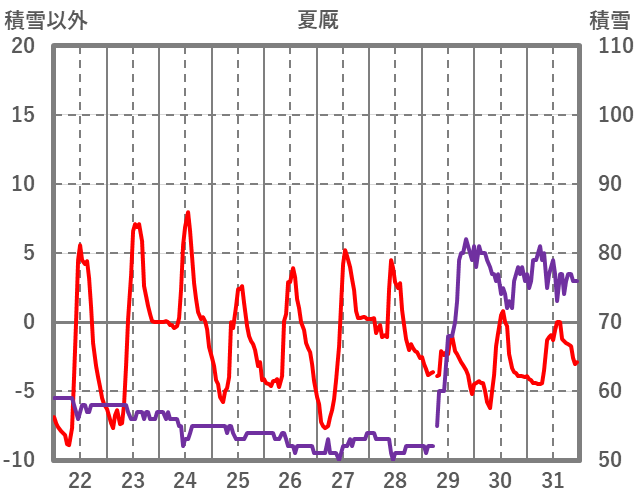 | 日 | 時 | 気温 | 降水 | 風向/風速 | 日照 | 積雪 | 降雪 |