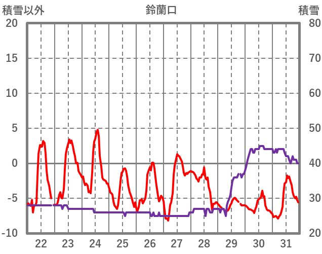 | 日 | 時 | 気温 | 降水 | 風向/風速 | 日照 | 積雪 | 降雪 |