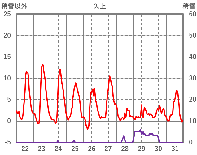 | 日 | 時 | 気温 | 降水 | 風向/風速 | 日照 | 積雪 | 降雪 |