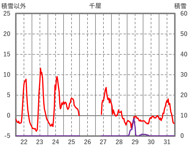 | 日 | 時 | 気温 | 降水 | 風向/風速 | 日照 | 積雪 | 降雪 |