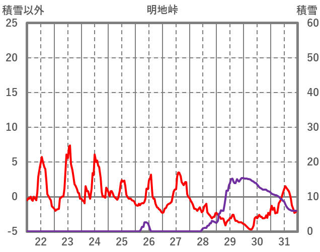 | 日 | 時 | 気温 | 降水 | 風向/風速 | 日照 | 積雪 | 降雪 |