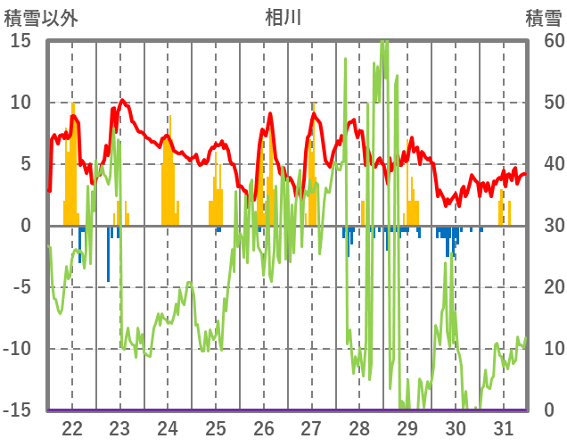 | 日 | 時 | 気温 | 降水 | 風向/風速 | 日照 | 積雪 | 降雪 |