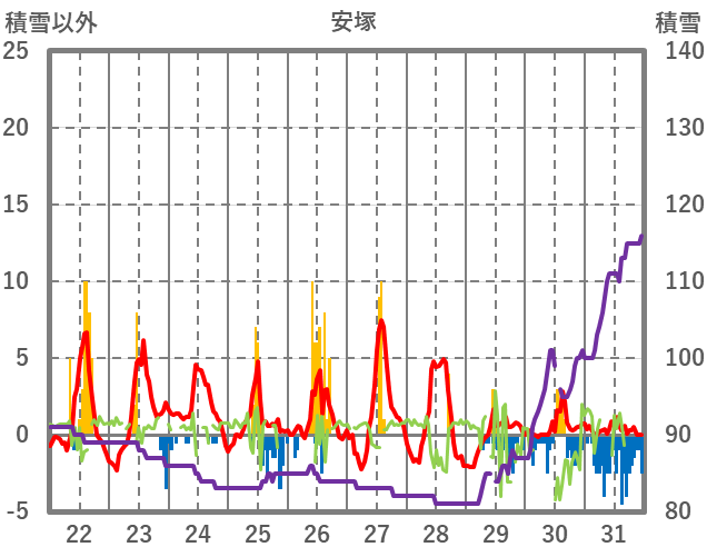 | 日 | 時 | 気温 | 降水 | 風向/風速 | 日照 | 積雪 | 降雪 |