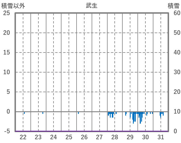 | 日 | 時 | 気温 | 降水 | 風向/風速 | 日照 | 積雪 | 降雪 |